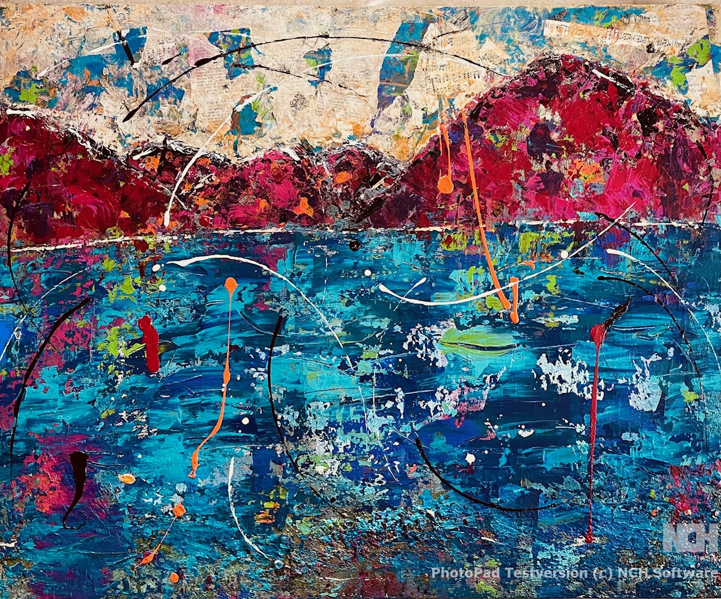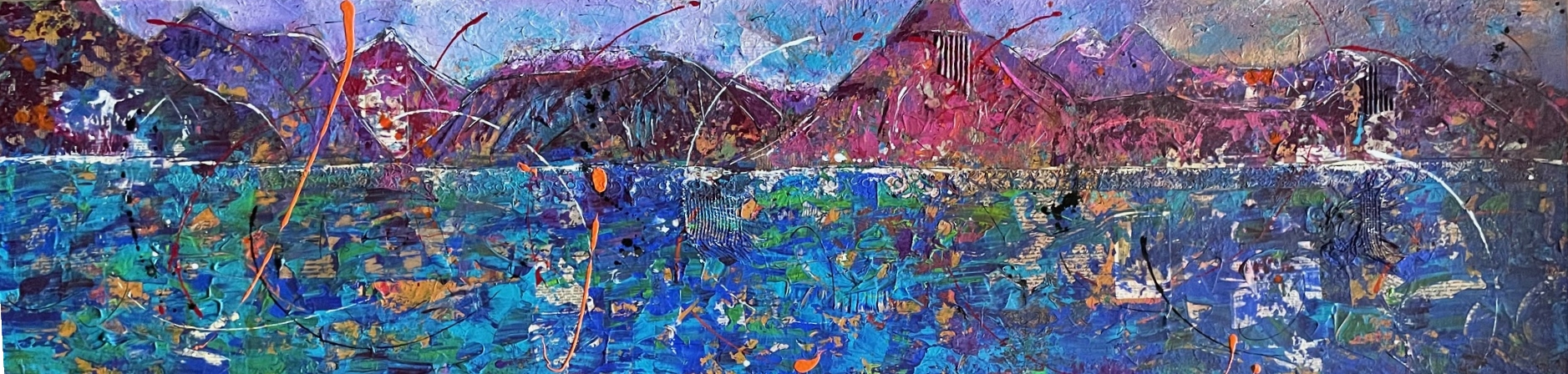 Farbigi Stimmig am Urnersee, Collage und Acryl, 50 x 200