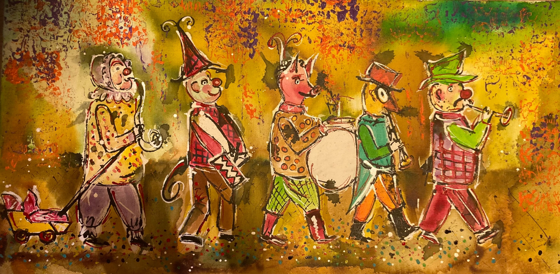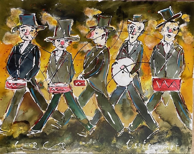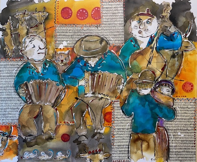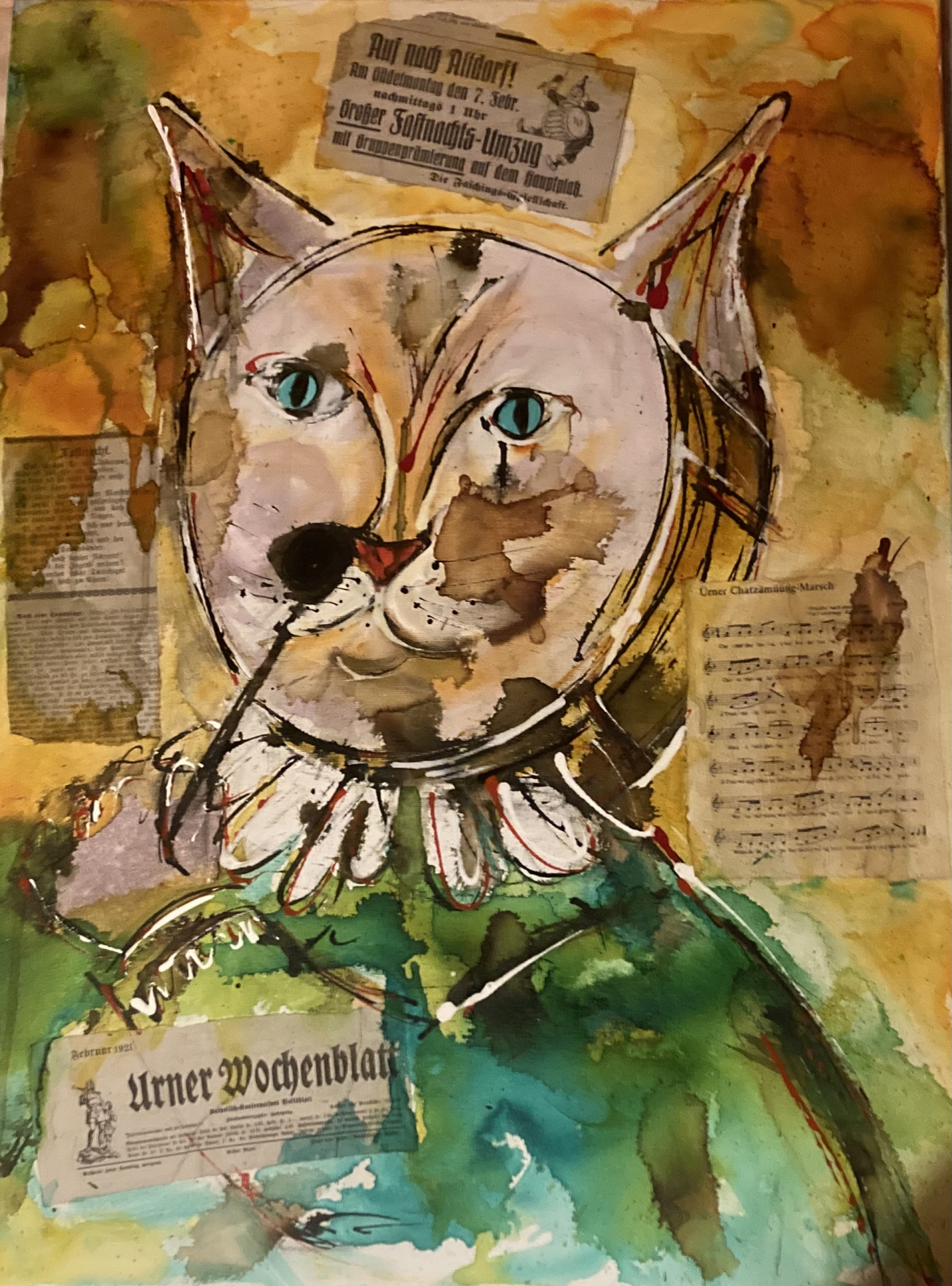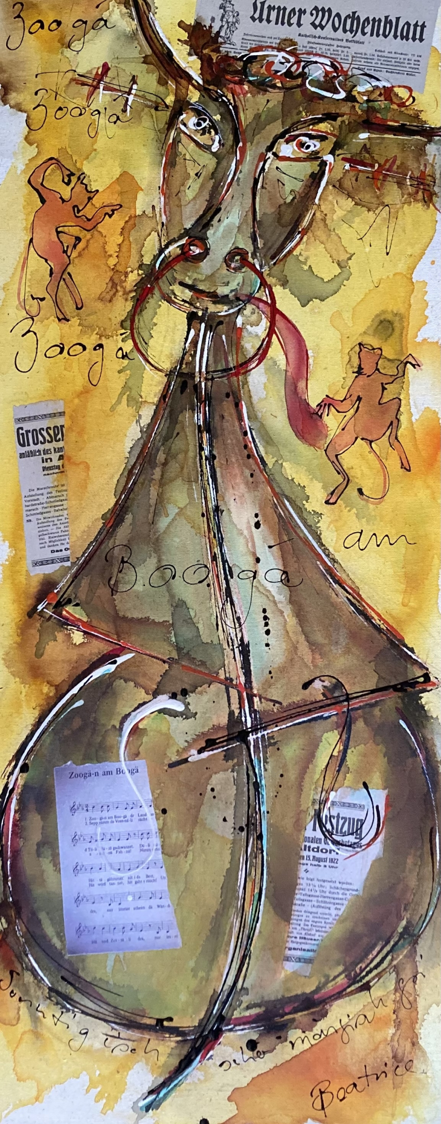 Chatzämusig-Marsch, Collage und Acryl, 60 x 80