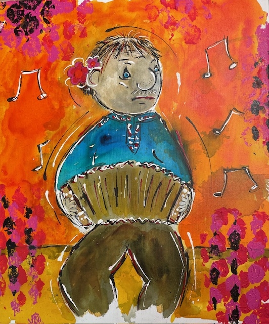 Dr Andri am Klarinettlä, Acryl, 50 x 60