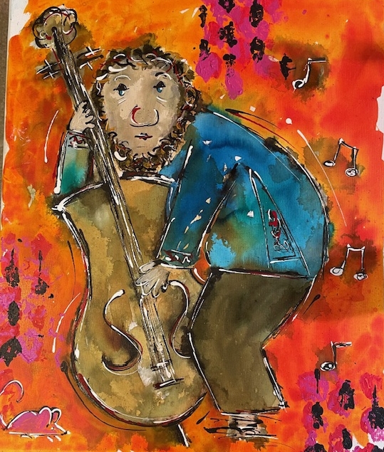 Dr Joos am Bass, Acryl, 50 x 60