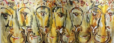 Ürner Chiä-Grindä, 7 Äügä– 6 Gfrääsi, Acryl, 40 x 100