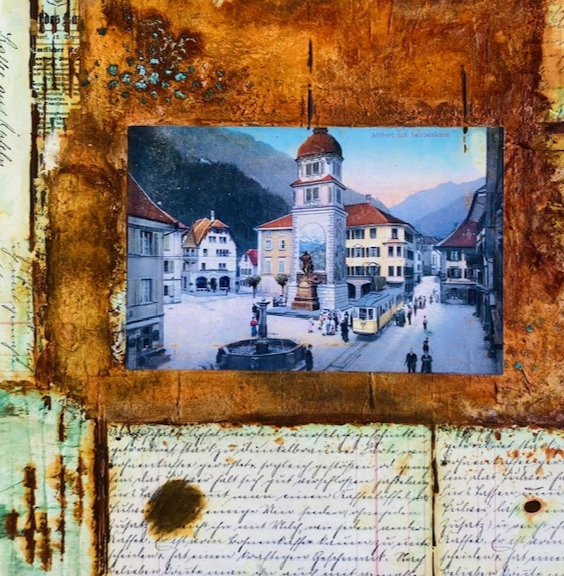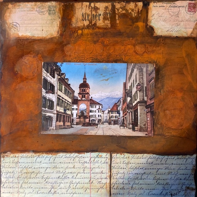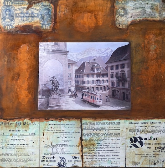 Altdorf - Tellsgasse, Collage, Rost und Patina, 50 x 50