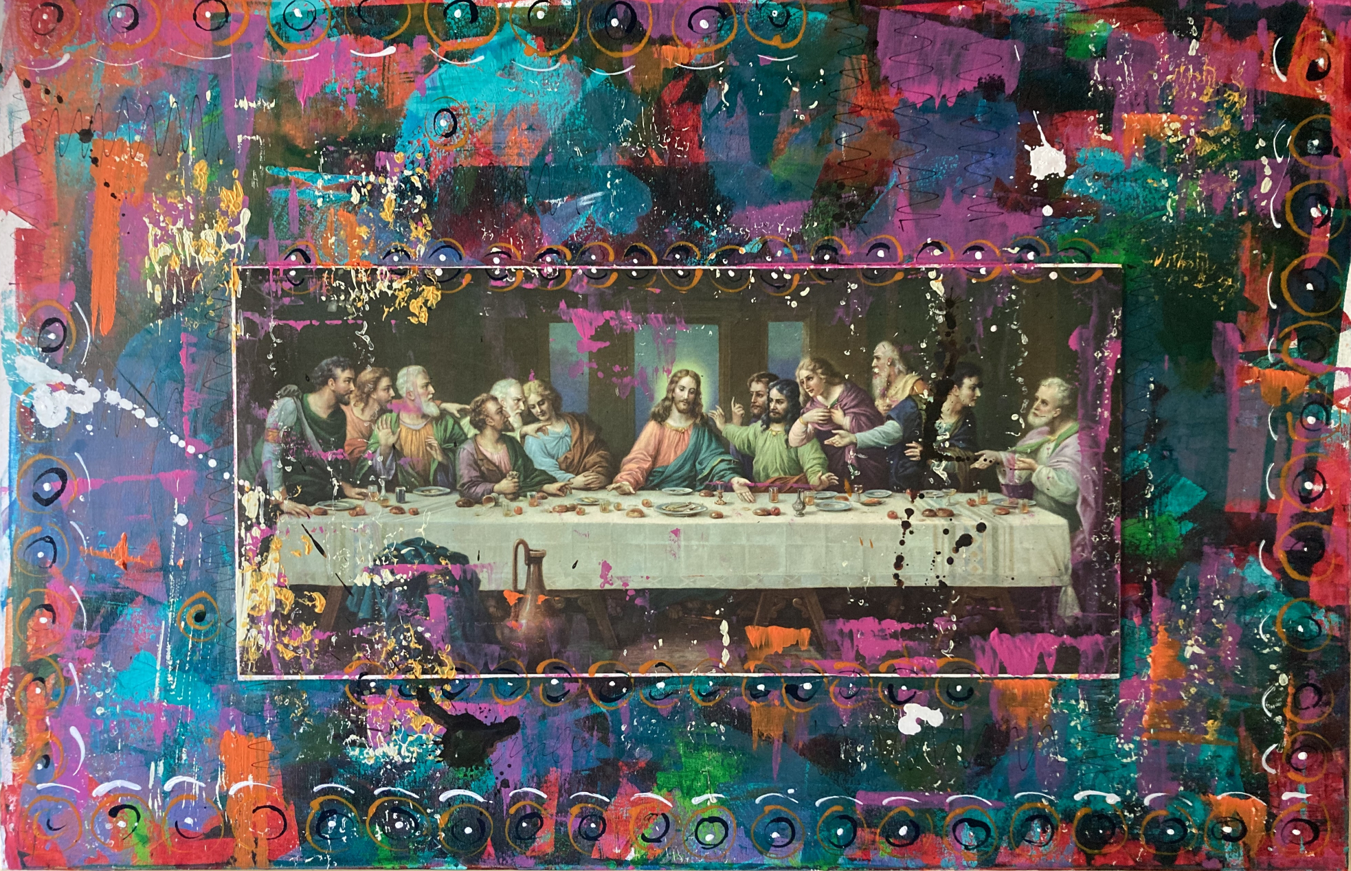 Kunterbunti Offäbarig, Collage und Acryl, 120 x 100