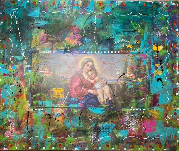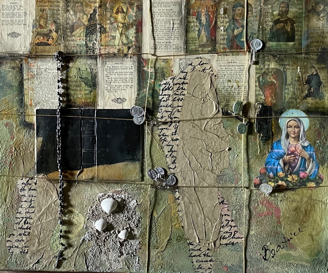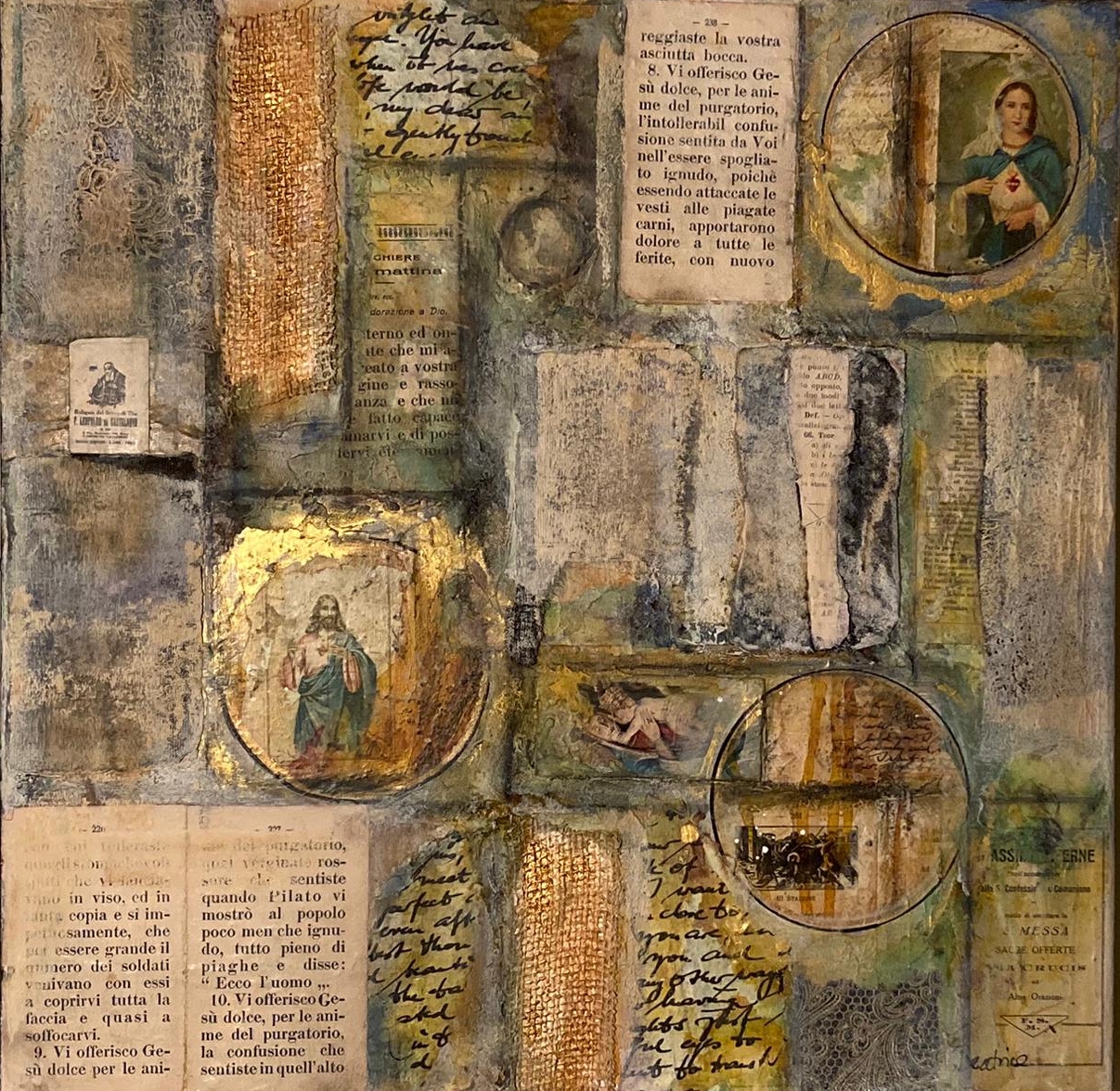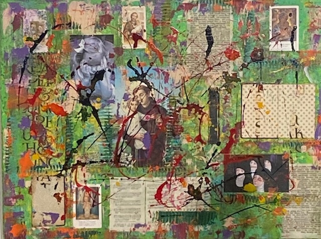 Graziellas Gebätsbuäch, Collage und Acryl, 50 x 50