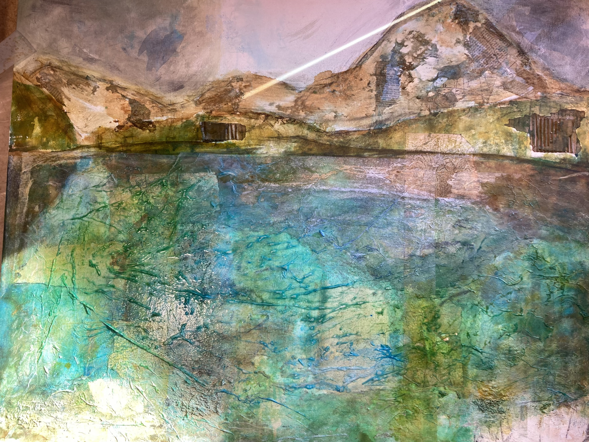 Dr Arnisee us minärä Sicht, Collage und Acryl, 80 x 100