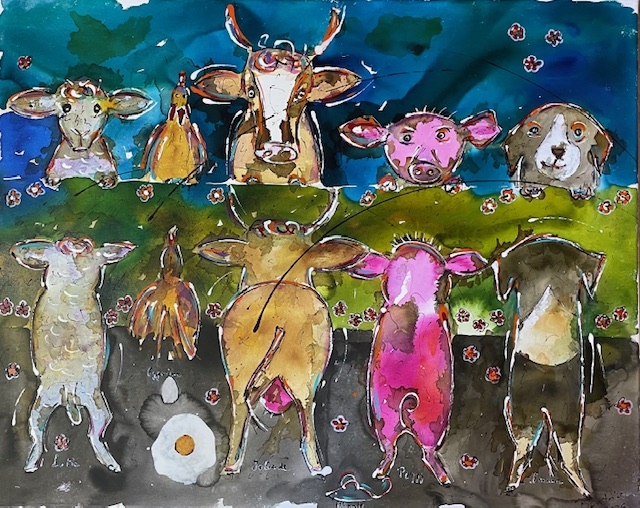 Lotte, Eggwina, Jolande, Peggy und Emma, Acryl 80 x 100