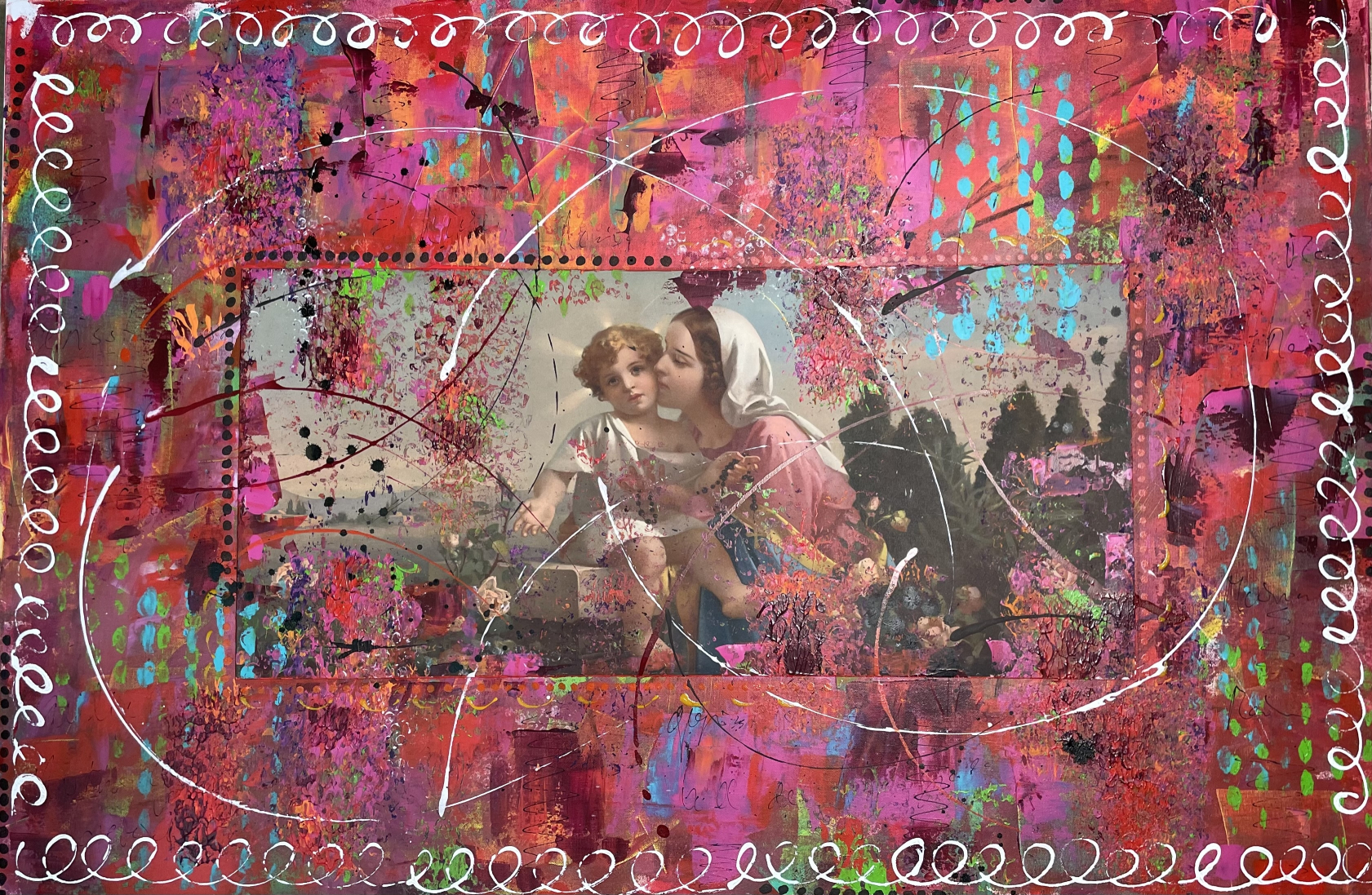 Umarmig, Collage und Acryl, 120 x 100